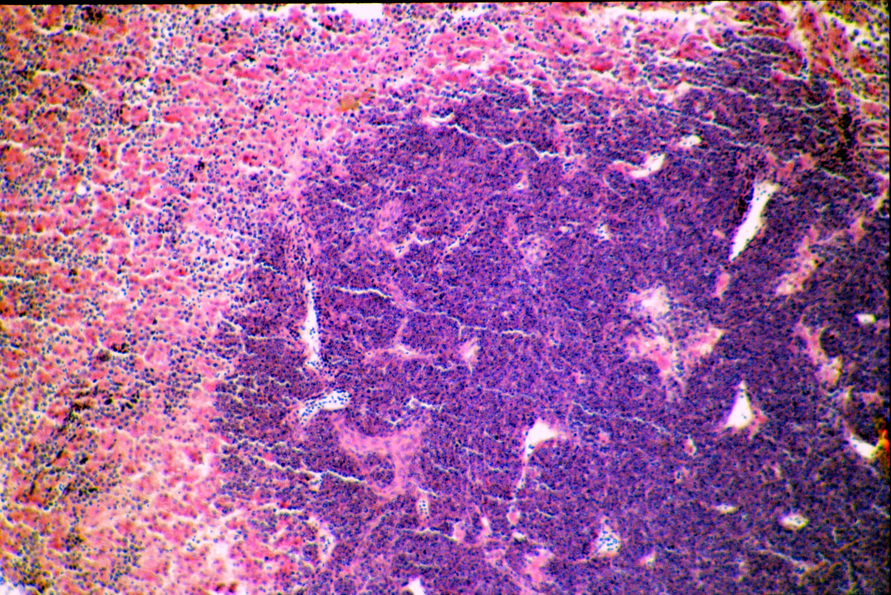 [thumbnail of 102. Liver Metastasis, LvMycSN vector secondary transplant, H&E] Image (102. Liver Metastasis, LvMycSN vector secondary transplant, H&E)